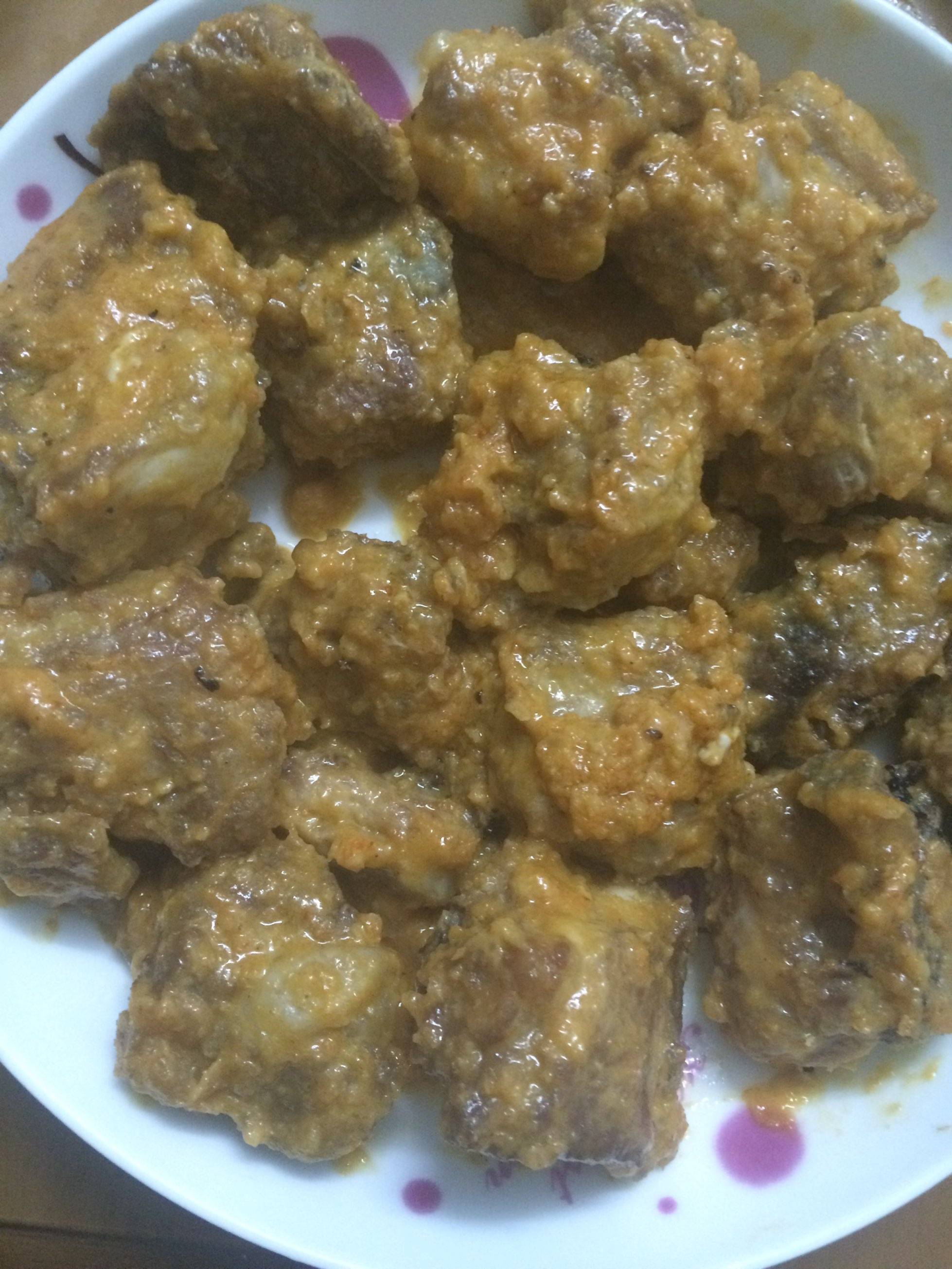 不知道为什么蛋黄粘不上排骨,炸出来颜色都不漂亮
