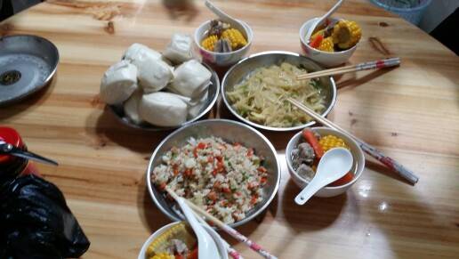 来琼中三天,未出现水土不服的反应,今天早上,我们没有做饭,出去吃了一顿,吃的海南粉,吃完饭,我们看到有人提着菜在小巷子里出来,就顺着那条路进去,曲曲折折的小路,就要放弃的时候,又看到一个人提着菜走过来,我们又兴冲冲的往前走,终于,找到菜市场,买了玉米,好贵的说,继续前行看到卖馒头的,好亲切的感觉,南方的馒头都是甜的,我们认错了馒头,大个的是椰蓉包,好尴尬,然后买了8个馒头,好小好小的,三个花卷,又去二楼买的肋排和肉,这个菜市场离我们住的地方好近呢!出门一拐弯就是。回到家,收拾好就开始工作了,然后,问题来了,我肚子突然好痛,去上厕所,果然拉肚子了……同事说,是早上吃的不对吧,我说,不应该吧,偶尔拉一次也是排毒的呢,没事儿……