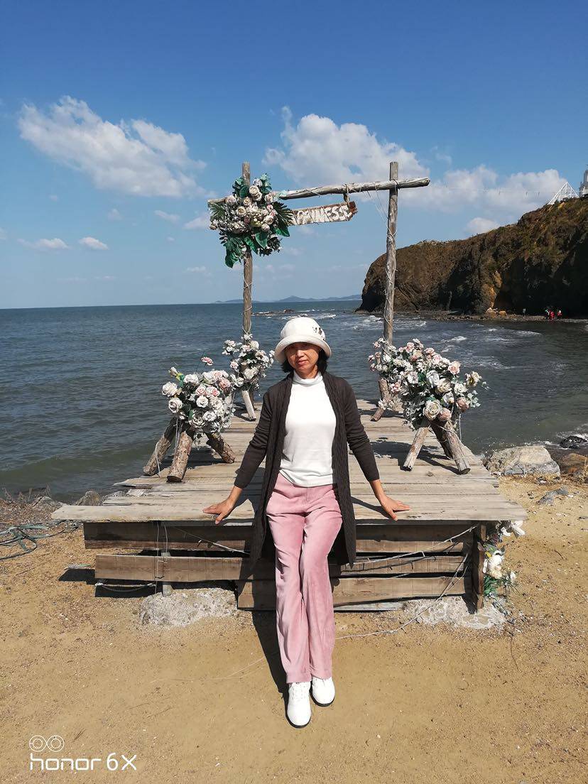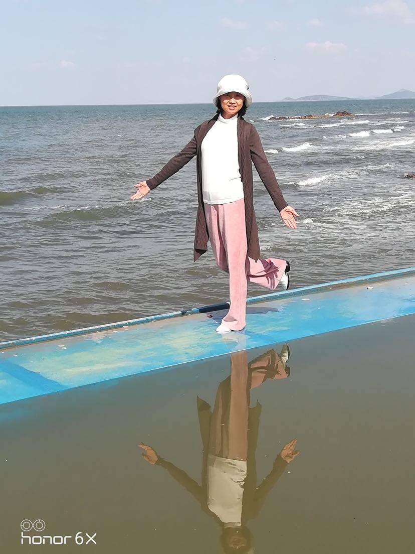 今天总算没人来,天又好,老于说要去钩鱼,我说我也跟着去,开始他不想带我,我说我感觉恢复的还不错,因我从未放弃锻炼,从术后出院回家第七天我就开始在家做八段锦了,之后每天都去公园做,就是走路慢点,今天是第十九天了。他扭不过我就带我去海边钩鱼了,到了海边钩鱼的人比鱼都多,我俩换了好几个地方也没钩到鱼。最后去的那个海边景色不错,拍婚纱照的倒是不少,我也跟着乱,反正也没有鱼钩不如让老于在海边给我拍几张照,臭美一下。