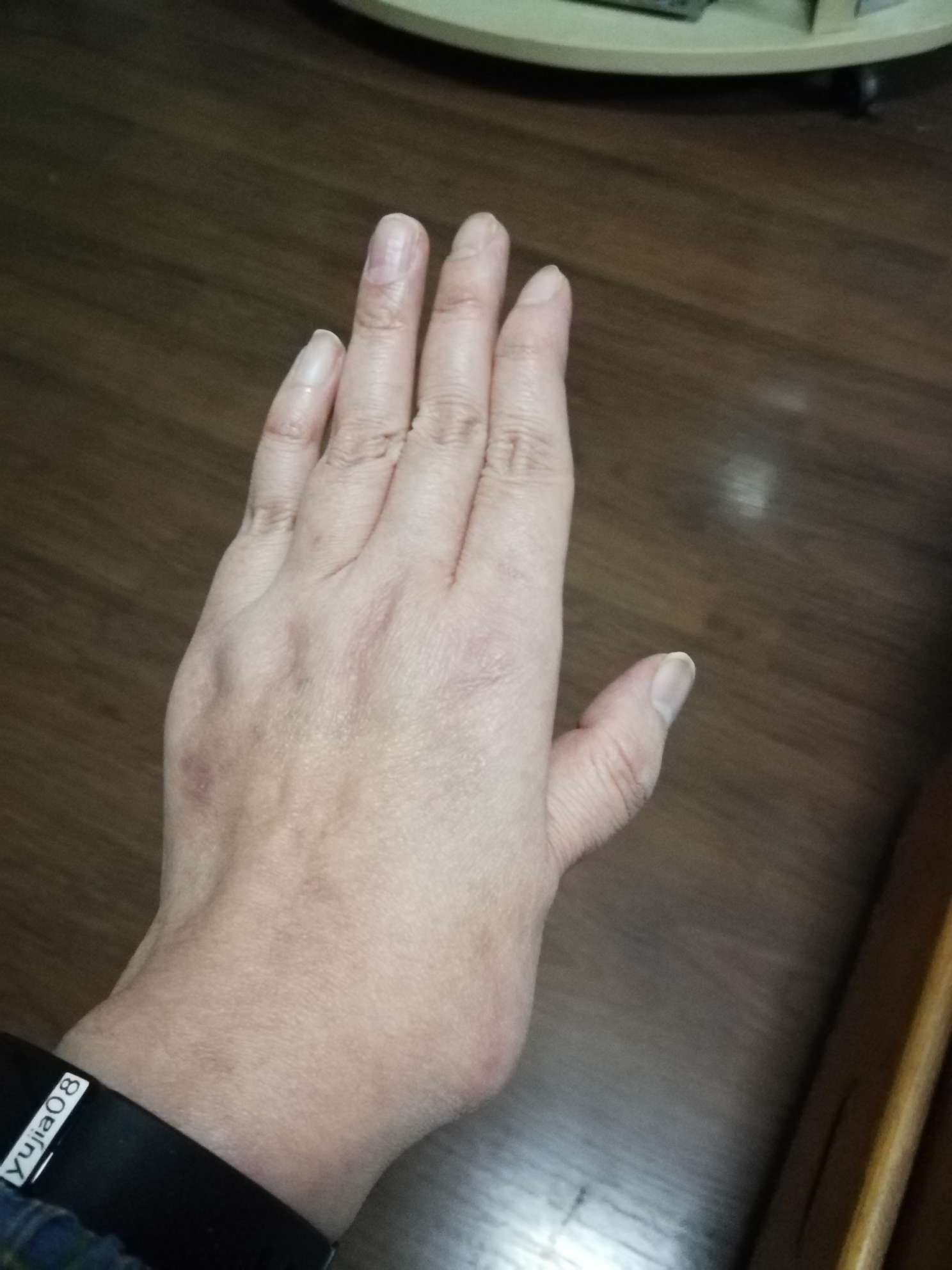 我和你一样,我左手。风湿科的医生说是狼疮引起的手关节肿痛发炎造成的损伤。