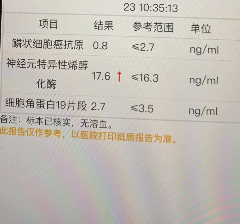 第一次加了肿瘤标志物相关检查,有一个指标稍微有点高,估计也没多大影响。