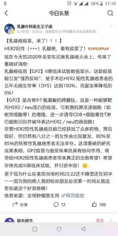 这个早报道过了,要结合靶向药和免疫佐剂组才有这个数据。才刚过2B期试验,准备第三期试验,最快也要几年后,就算中国上市了价格也是个问题,但总归是个希望