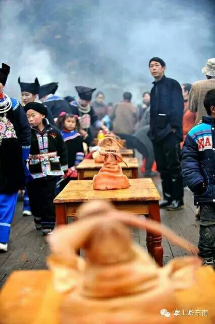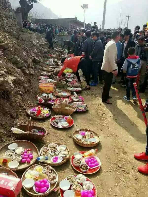 万小永各房族前来祭桥的人们七手八脚的架锅炒火,杀猪宰羊,烟雾缭绕,我一片热闹景象,
