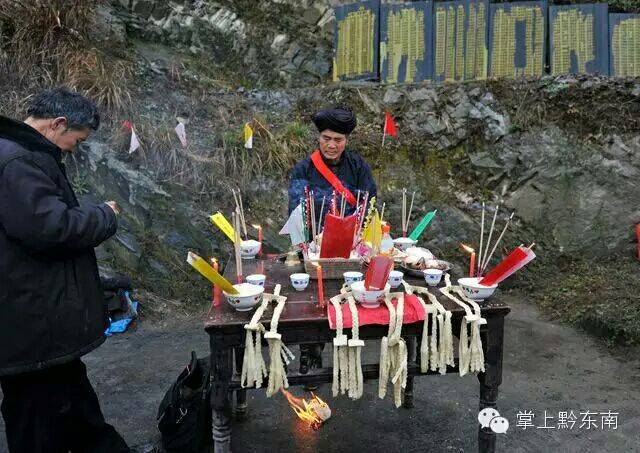 万小永一位巫师先行祀拜,对着雾山,口中念念有词 祈求龙神保佑,寨头人兴丁旺,风调雨顺,四季平安。