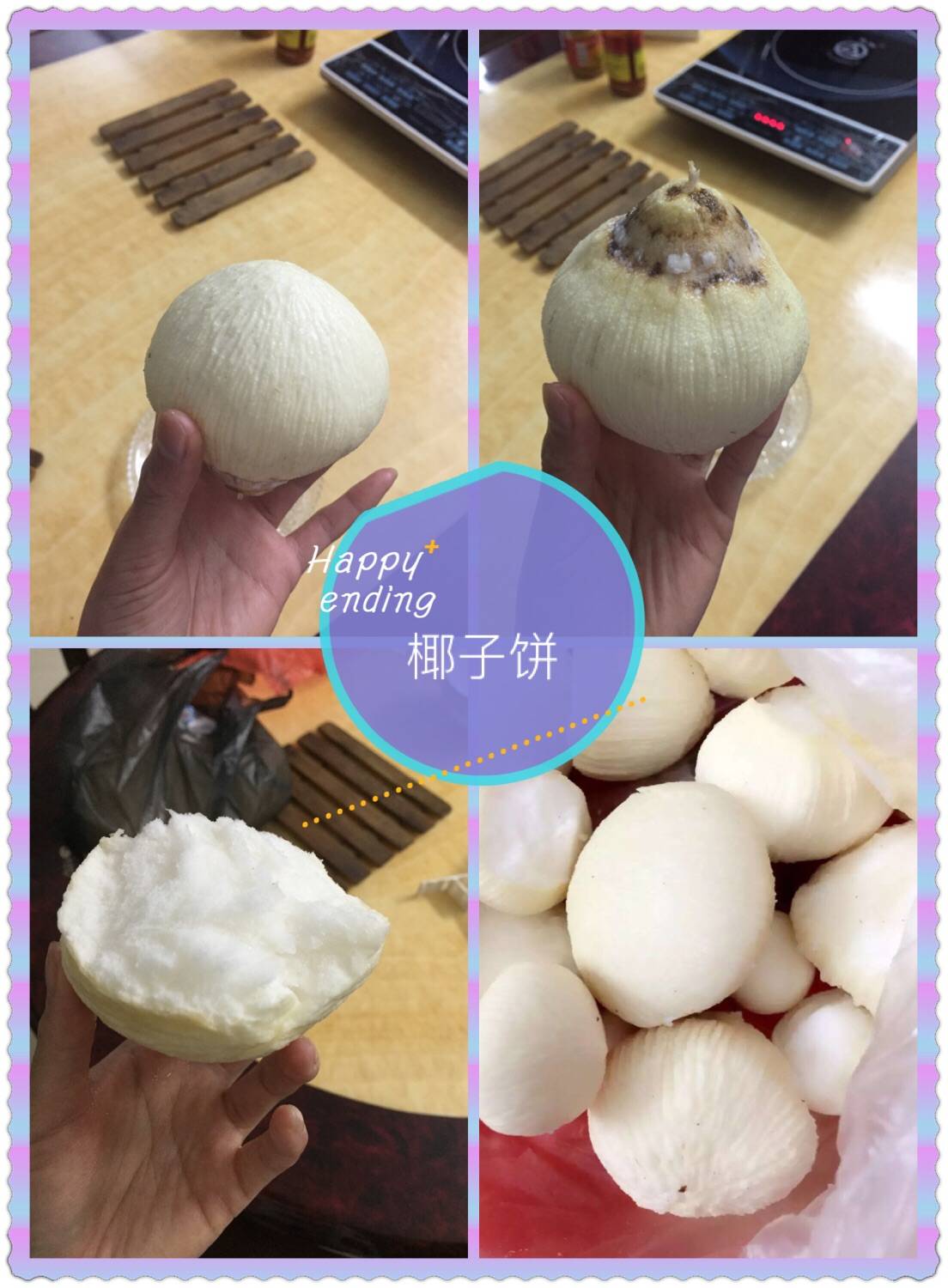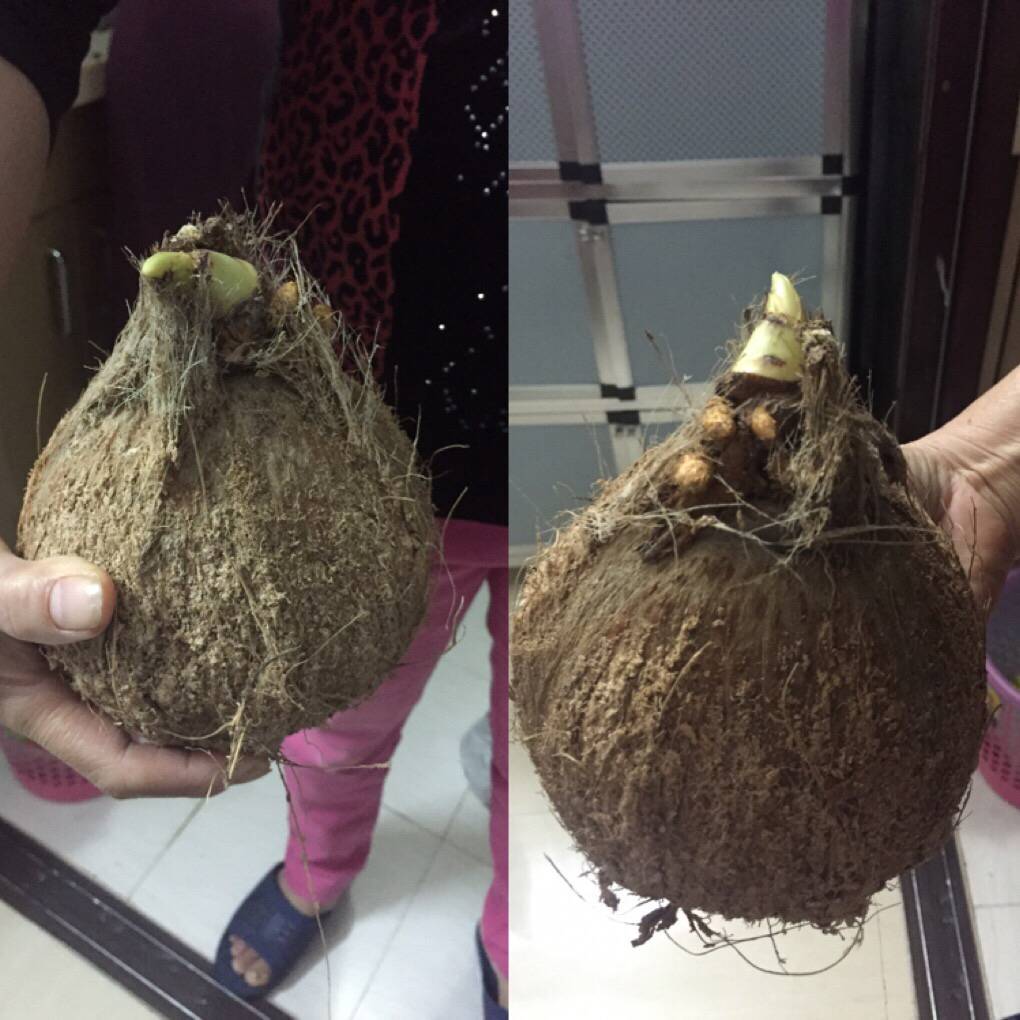 另外发,老椰子长芽后长在椰子肚子里的“椰子饼”照片一张,又甜又多汁,冰一冰更好吃