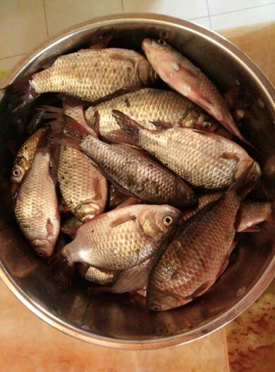 真好,回家可以炖鲫鱼汤了。