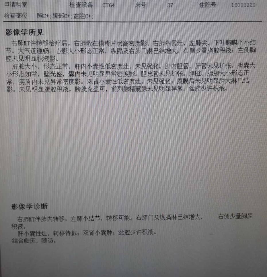 CT报告显示吃克两个月以来,肿瘤缩小了约0.7cm