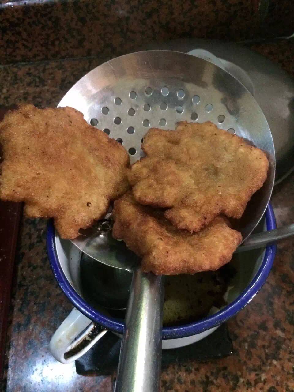 中午老妈在姜粿里加了面粉,再下锅炸。。。炸出来的姜粿特好吃。。。又香又脆。。因为加了白酒的缘故,所以我只吃了一块。。。再配上一碗热热的西红柿猪肝汤。。。喝完身体立马暖和了。。。我们的午餐就这样解决了。。。
