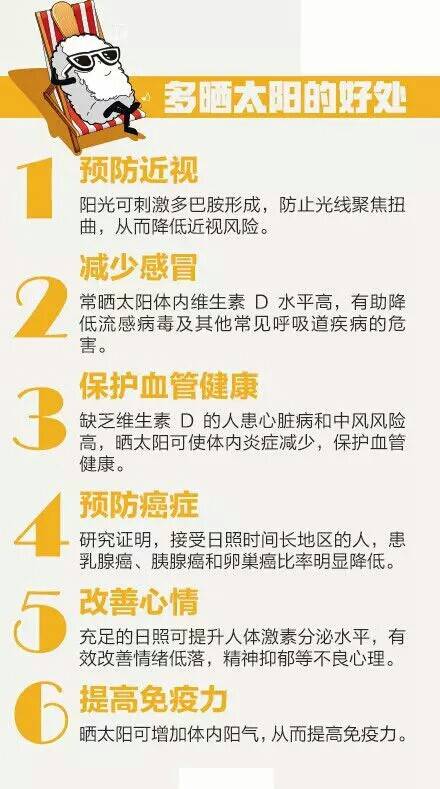数据显示,目前我国至少有6944万人患骨质疏松症,七八十岁老人患病率几乎100%,晒太阳不足是重要原因。晒太阳不仅能预防骨质疏松,杀菌消毒,还可减少感冒、保护血管健康、提高免疫力…是专家们公认的免费长寿秘方。可你知道怎么晒吗?戳图↓↓健康晒太阳,莫负好春光!