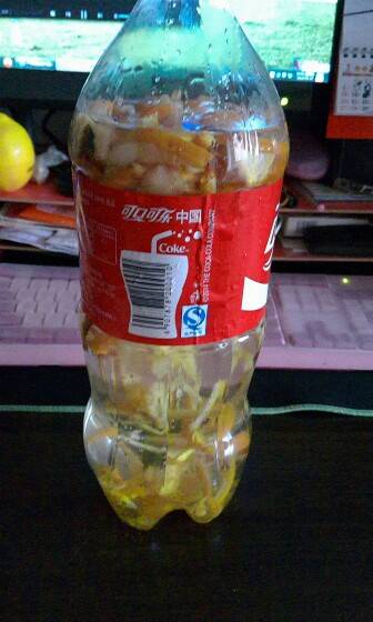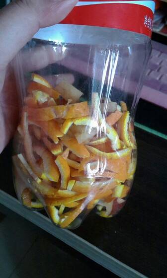 我吃了橙,个苹果,把皮都切细了,放在汽水瓶里,加水,加糖,每天放气,经过3个月的时间,它就会成为清洁工具哦,用来拖地,搽脏的桌子,洗碗都是可以的。