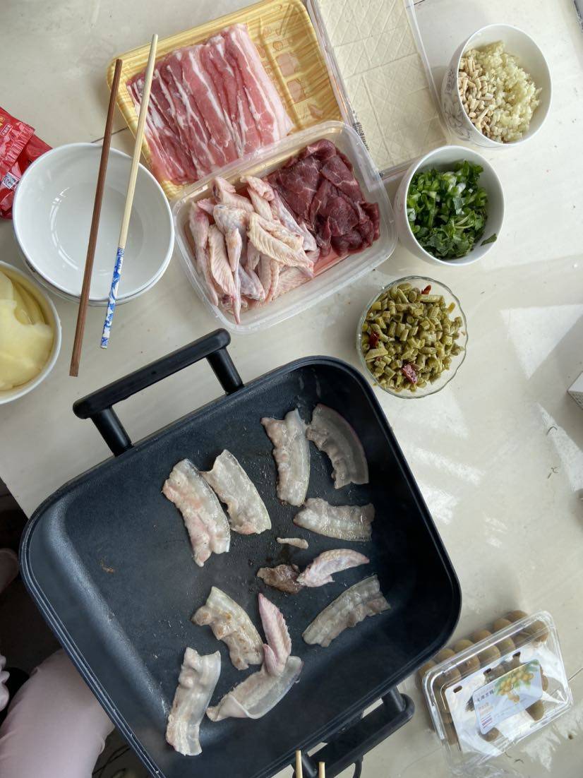 透析的时候在盒马和永辉买好了牛肉 五花肉片 土豆 鸡翅 包浆豆腐,中午给三哥 二姐烤肉吃。晚上再出去吃。
