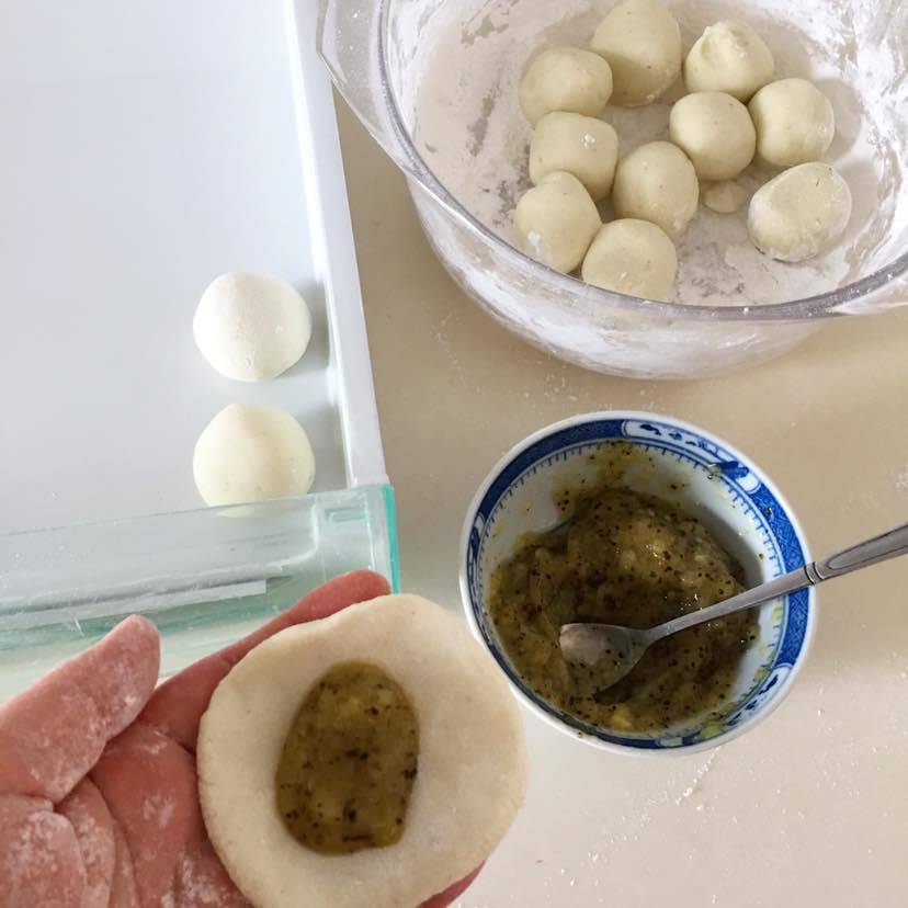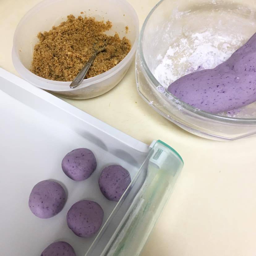 我用蓝莓汁活糯米粉,这样营养价值更高😄也好分辨哪种口味的