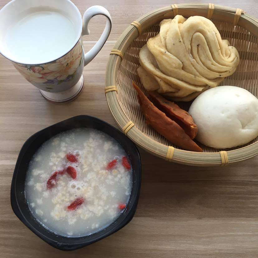 枸杞燕麦粥/地瓜干/花卷/花生芝麻核桃仁包/牛奶