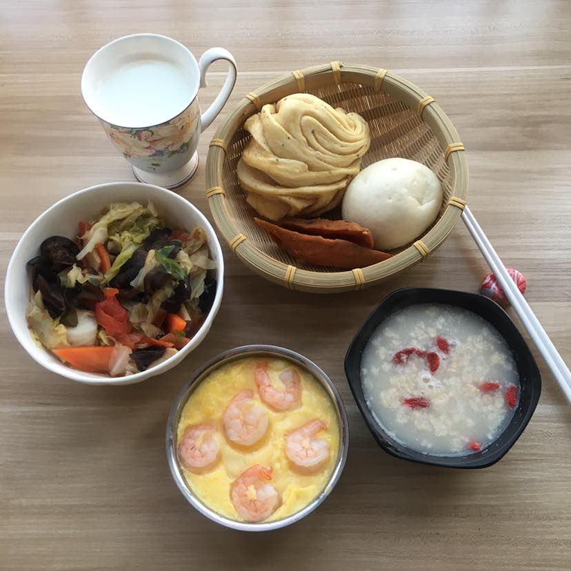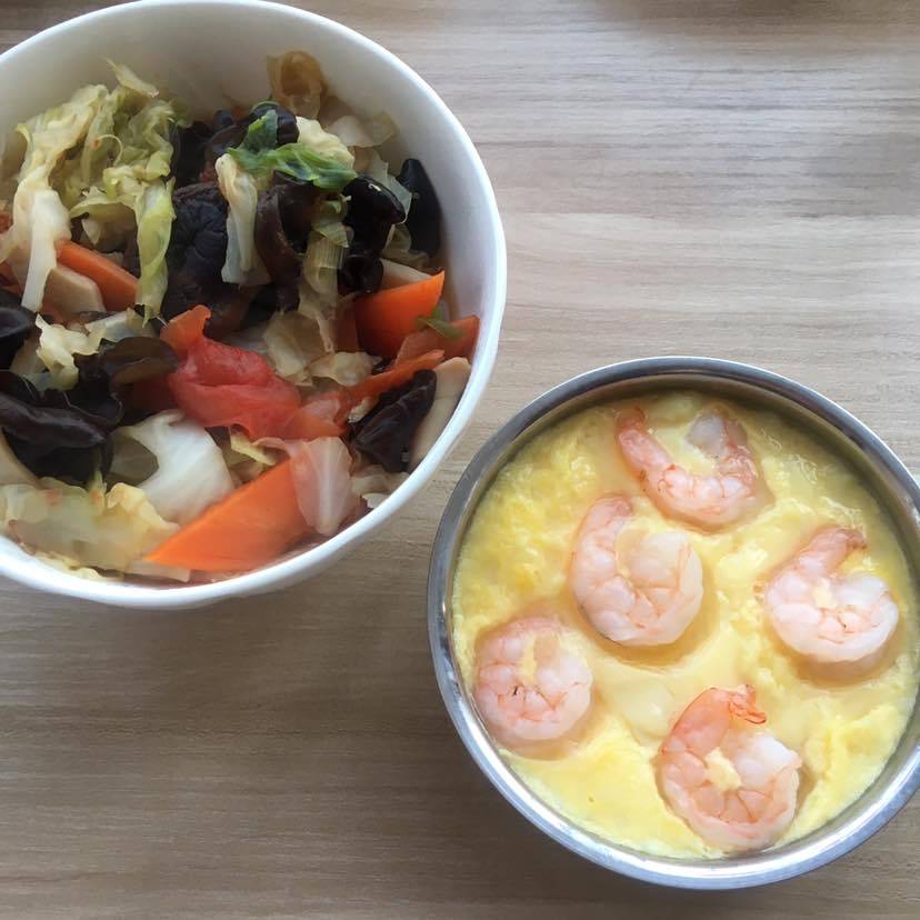 早餐:虾仁鸡蛋羹/白菜杏鲍菇🍅烧木耳🥕