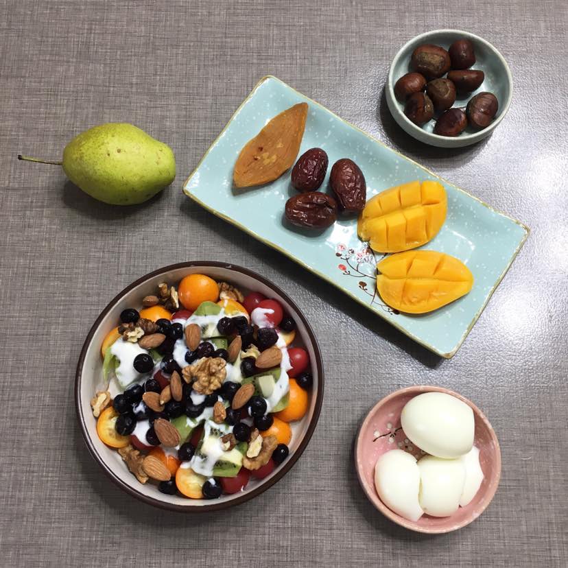 晚餐我基本都是代餐,用脱脂牛奶做的酸奶代替沙拉。一块地瓜干🍠和几个板栗补充碳水化合物。一个鸡蛋一个蛋白补充蛋白质。