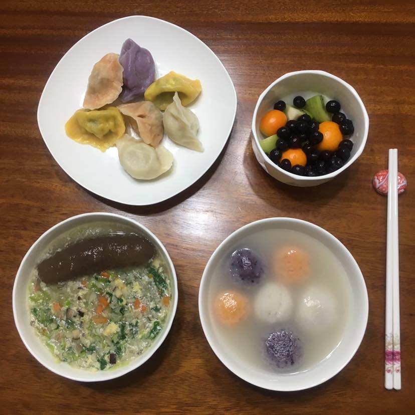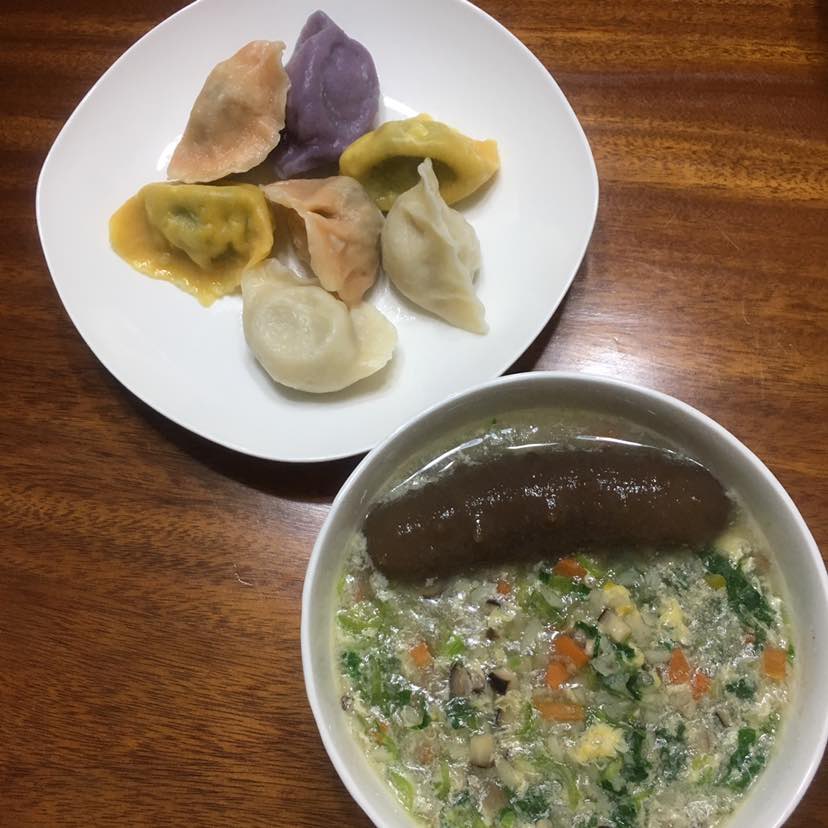 不同馅料的饺子,山药香菇🥕油菜鸡蛋汤