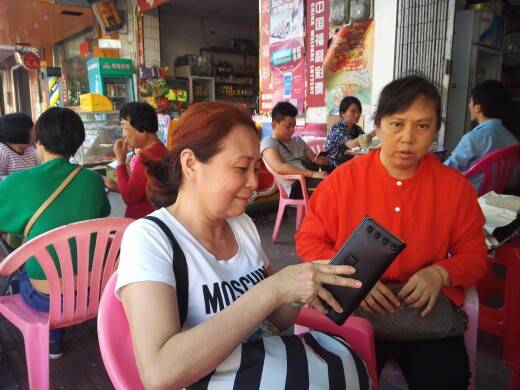 群里的老大姐左起素颜寨花、静姐寨花、兰姐寨花