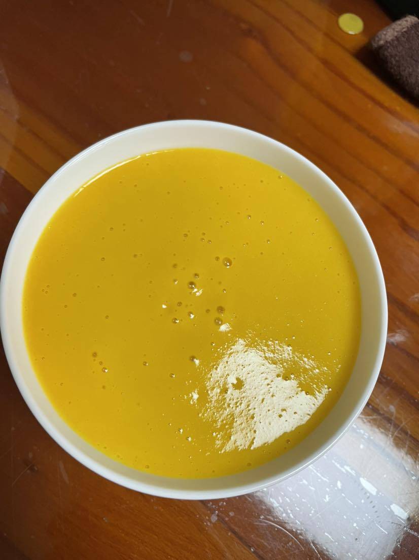 今天第一次尝试南瓜汤,看了下说明,先把南瓜蒸熟,然后放牛奶打一下。老公说,这是他喝过的最好喝的果汁……😂😂比什么玉米汁好喝多了。个人感觉,好像奶味没有西餐厅的好,不知道再放点芝士会不会好一些。
