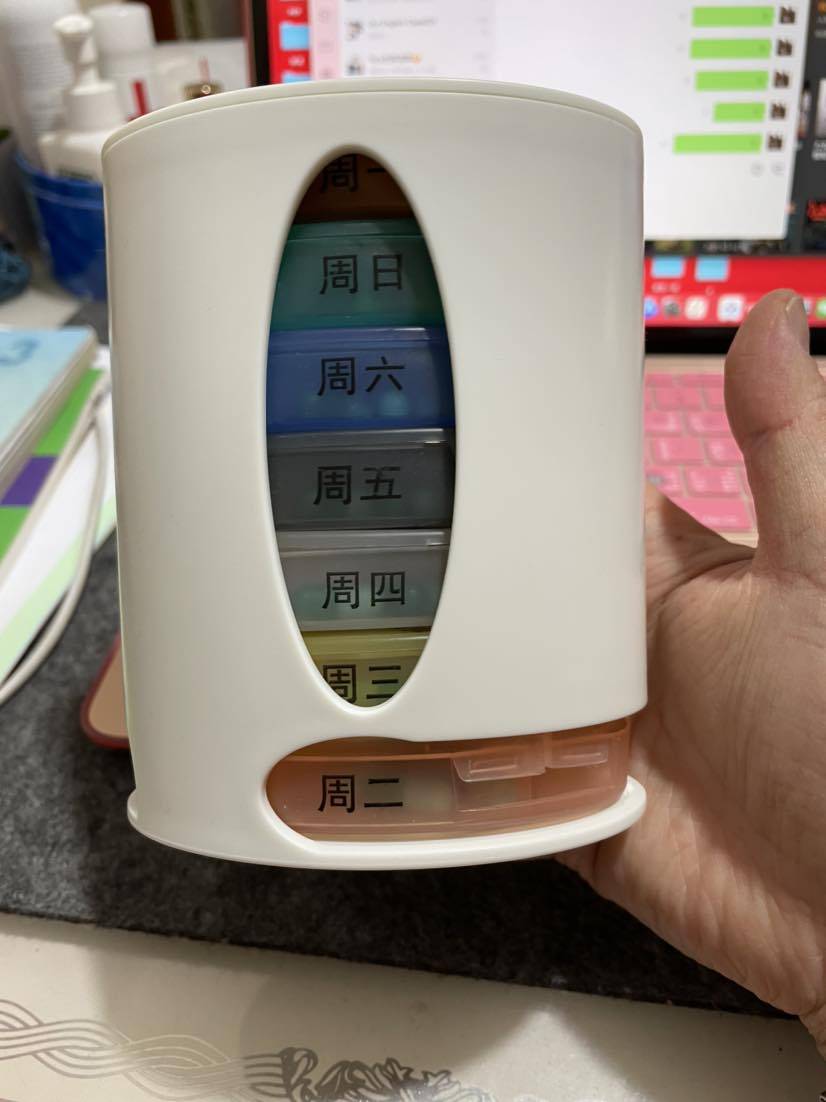 这药盒挺方便的,这样就不会忘记吃药了