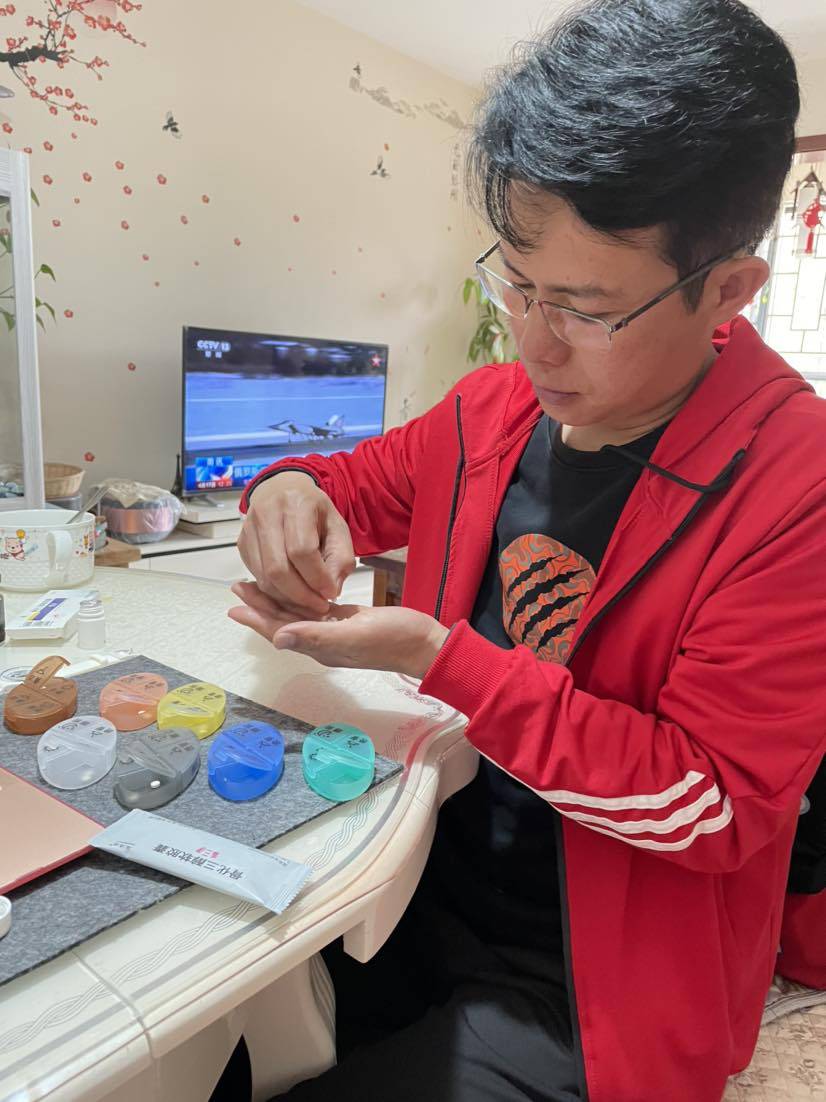 老公有时很暴躁,有时候还是会耐心一下的。今天使唤他帮我分药。以前刚出院的时候,吃什么药比我还激动。现在我吃啥药都不知道了……