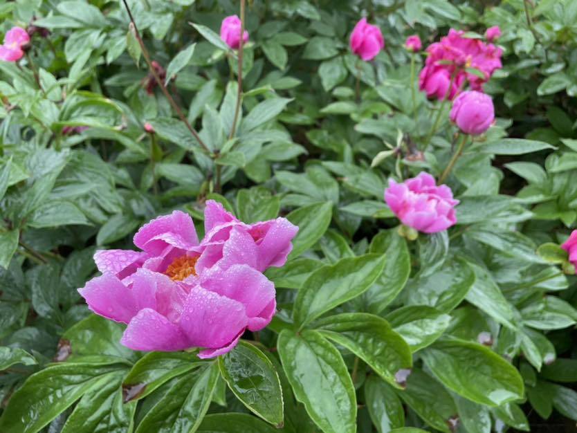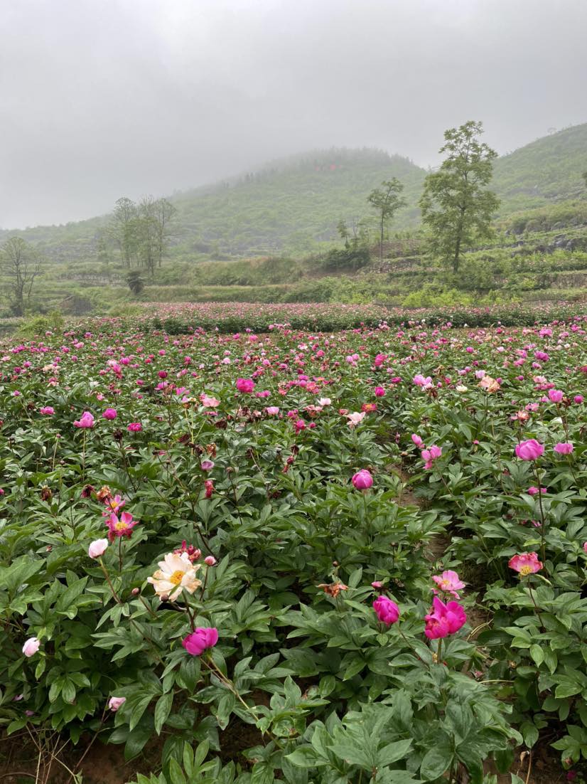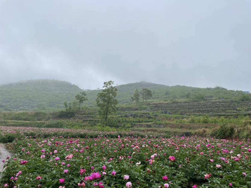 今日,工作之余,顺便去看了看芍药花,虽然花谢得差不多了,天还下着小雨,但空气很新鲜,心情还是很不错的,带了一盆芍药回家养,也买了很难买到的地道的地瓜片、野菜粑。