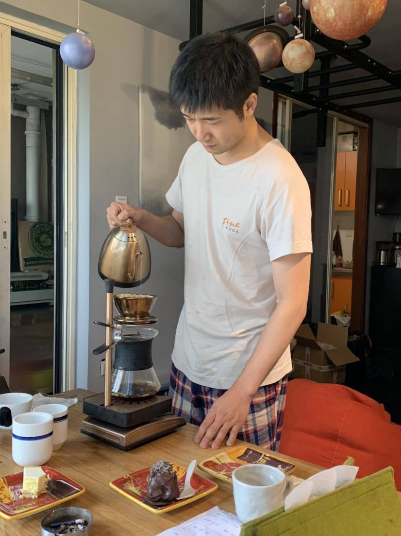 朋友参加了咖啡的一个培训后他得到了一个咖啡师的证明,他现在可以自己做非常好的咖啡,今天去了他家平常一下