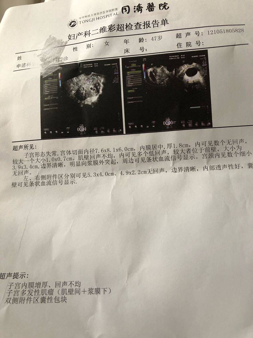 今天来武汉同济复查,从早上六点出发到达医院,挂号找医生排队等候检查了三项,右侧咀嚼肌拉伤,问题不大!但是另外两项让人头疼,望姐妹们帮我看一下,子宫内膜厚1.8厘米,囊肿超过5厘米。乳酸脱氢酶超出正常范围。内分泌药又不能停怎么办?求助?