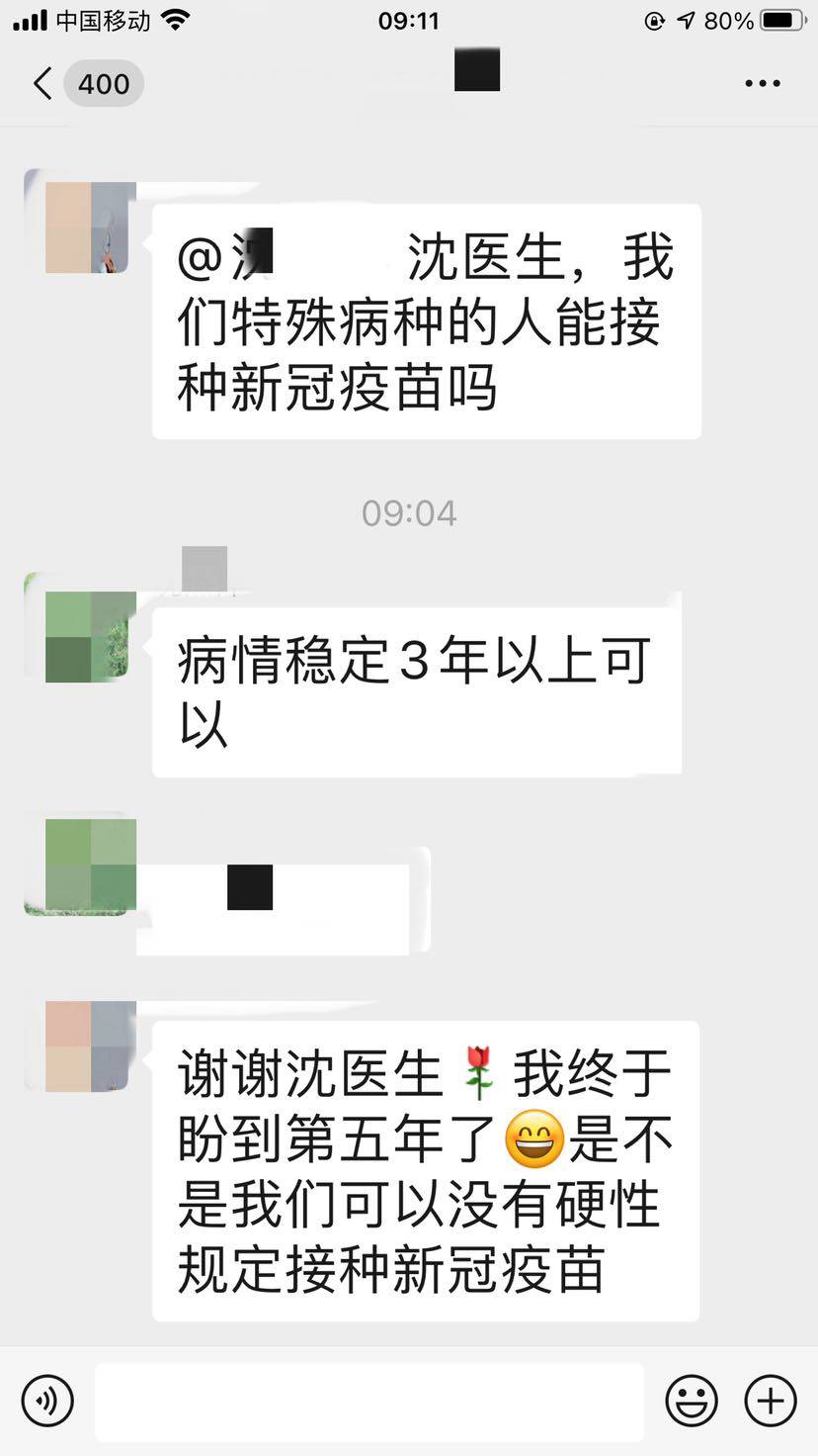 不少姐妹在询问我们是否能打新冠疫苗的问题,我所在的一个病友群里有姐妹问医生,医生的回答是这样的,姐妹们看看吧。