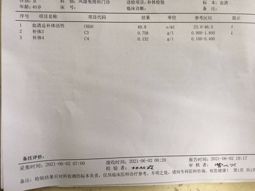 补体低有什么症状吗