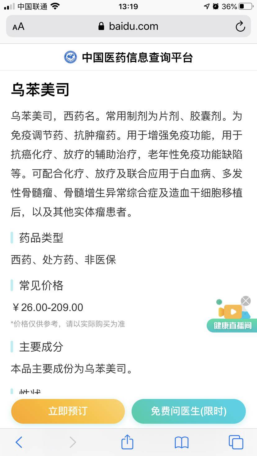 乌苯美司,这是一个康复6年姐妹的分享!!医院开,自费,价格还算合理,可以接受。