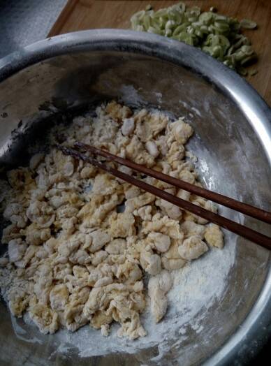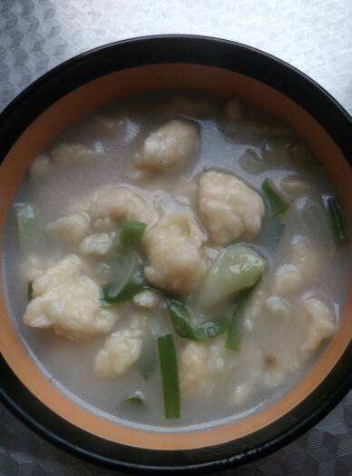 中午做的蛤蜊,还有些汤,晚上我就用它来做疙瘩汤。弄了不到一碗面,啪啪,两个鸡蛋打进去了,开始搅吧,越来越稀,我又加面,面都成一块了,还是稀,又加面……以至于后来越来越多,鸡蛋还是多,面也成黄色的了,就这样吧,再加的话就吃不完了