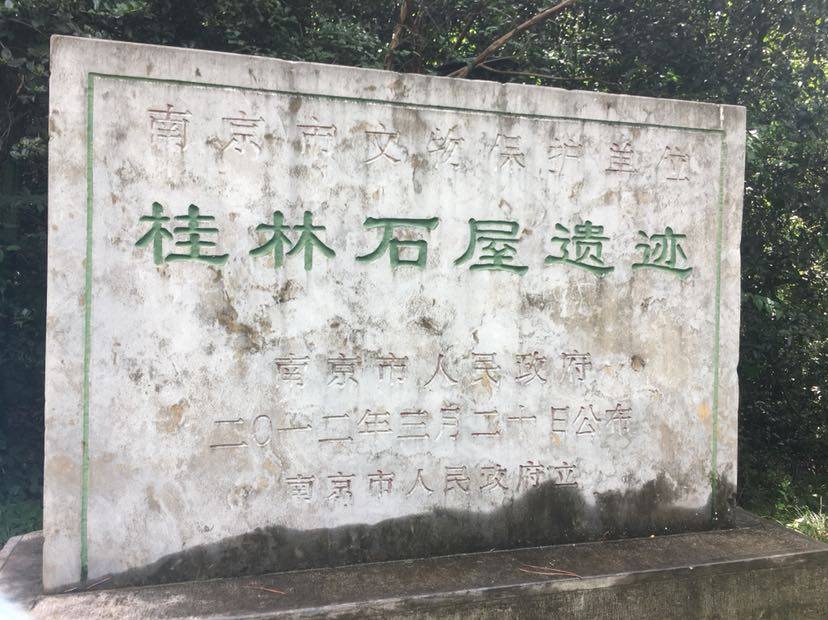 今天的风比较大,雨后的路上刮着大风,水中的雾气,在道路中有种朦胧梦幻的感觉,空气清新,一会儿就来到了灵谷寺公园门口,走了几步看到指示牌指向桂林石屋,于是我们想一探究竟,路上只有我们两个大爷大妈,很快就来到了桂林石屋。