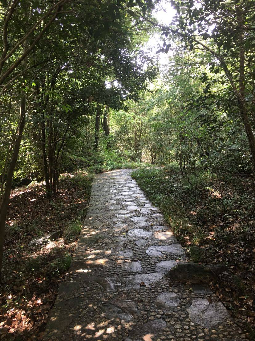 桂林石屋我也是今天才知道的,今天上午雨停了,可能哪里刮台风了很凉爽,带上雨伞今天的路线公交车🚌五棵松站下车,沿着绿道顺着紫金山的方向前行,在一个三岔路口向左走就是灵谷寺,以前爬山看到过这条路但从没走过,于是今天就选择这条路了。