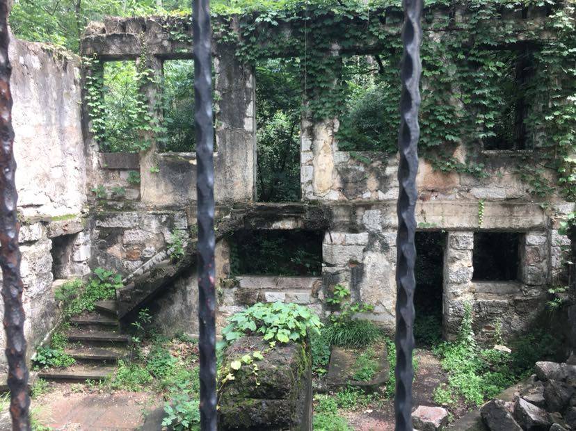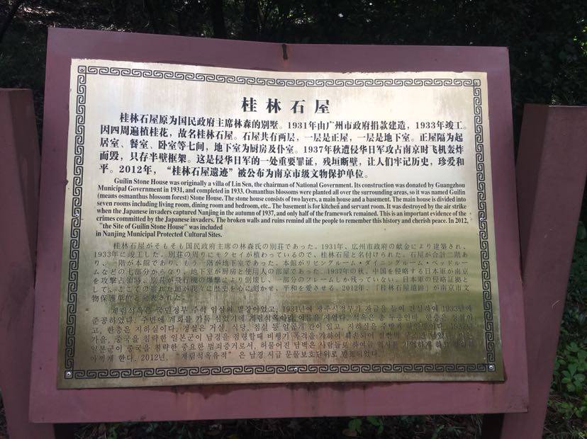 为什么叫桂林石屋呢?原来石屋周围全是桂花树因而起了这个名字,看了介绍,这是原国民党主席林森的别墅,1931年由广州市政府捐款建造,1933年完工,1937年被日军轰炸,成了现在这样的断垣残壁,这是日军侵略中国的一个重要罪证。
