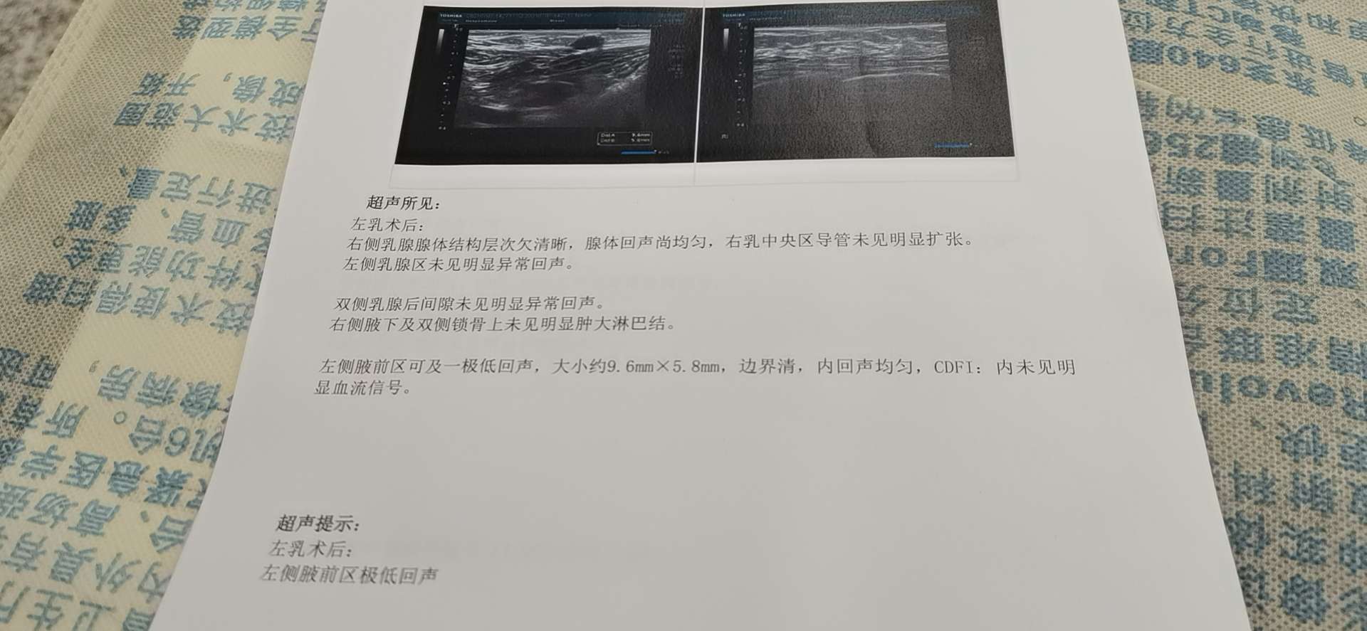 谢谢姐妹们,彩超出来了,健侧没事,可能是乳房太小了,医生硬扯到机器上的