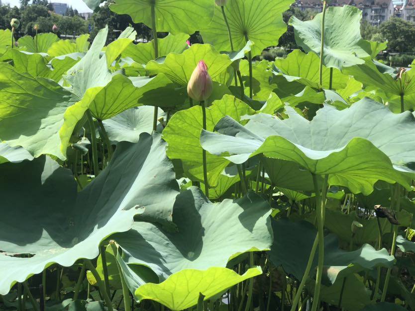 这几天的朋友圈,朋友们在晒荷花,那个美呀!看得我心里痒痒的,但这几天气温很高太热,大概早上7点左右就热起来了,可我想欣赏荷花的热情不减,昨天终于忍不住了,在从女儿家回我自己家的途中,靠近公园的一站下公交车,走了一小段路,就是公园了。