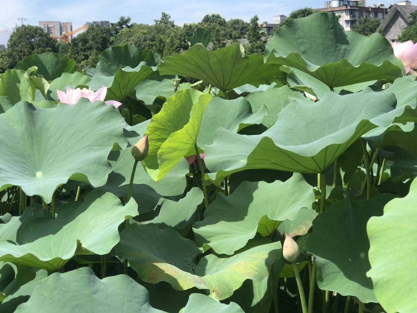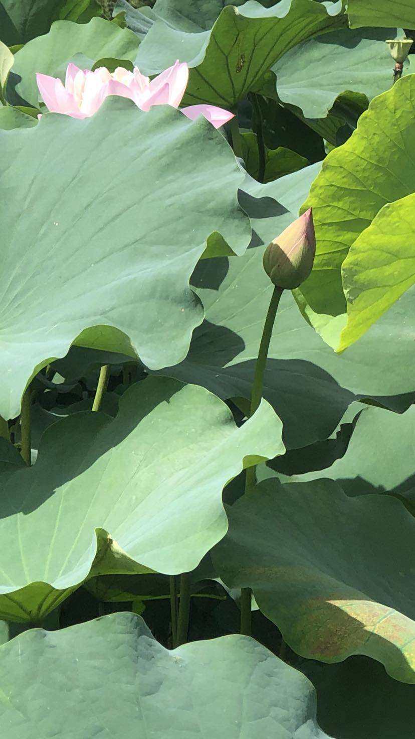 公园的 湖边上有很多摄影爱好者拿着各种摄影器材对准的荷花拍照,好热闹😊😊。我也是边看边拍,我想大的荷叶都可以当阳伞用了,荷花有的含苞待放,有的已盛开,有的已成莲蓬。