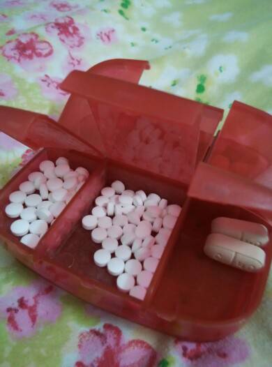 药盒不要放这么多散药,药要受潮的,药性会变。每天要吃的放药盒。或出门用药盒方便点