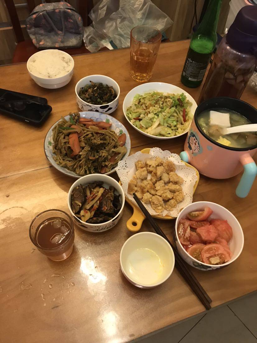 晚上给董叔叔弄了一桌,我默默地吃了碗糖拌西红柿。