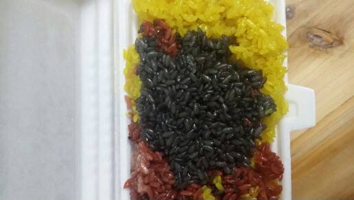 因为前些日子在蝴蝶寨群里问起过,所以我惊奇的喊到,呀!五色饭→_→我那小同事停下脚步,只听那卖饭的美女弱弱回一声,三色饭╮(╯▽╰)╭,艾玛,老尴尬了……四月九号,阴历三月三,据说,我待的这里老热闹了,所以,好期待呀……好了,我要开始工作,同学们,早安!