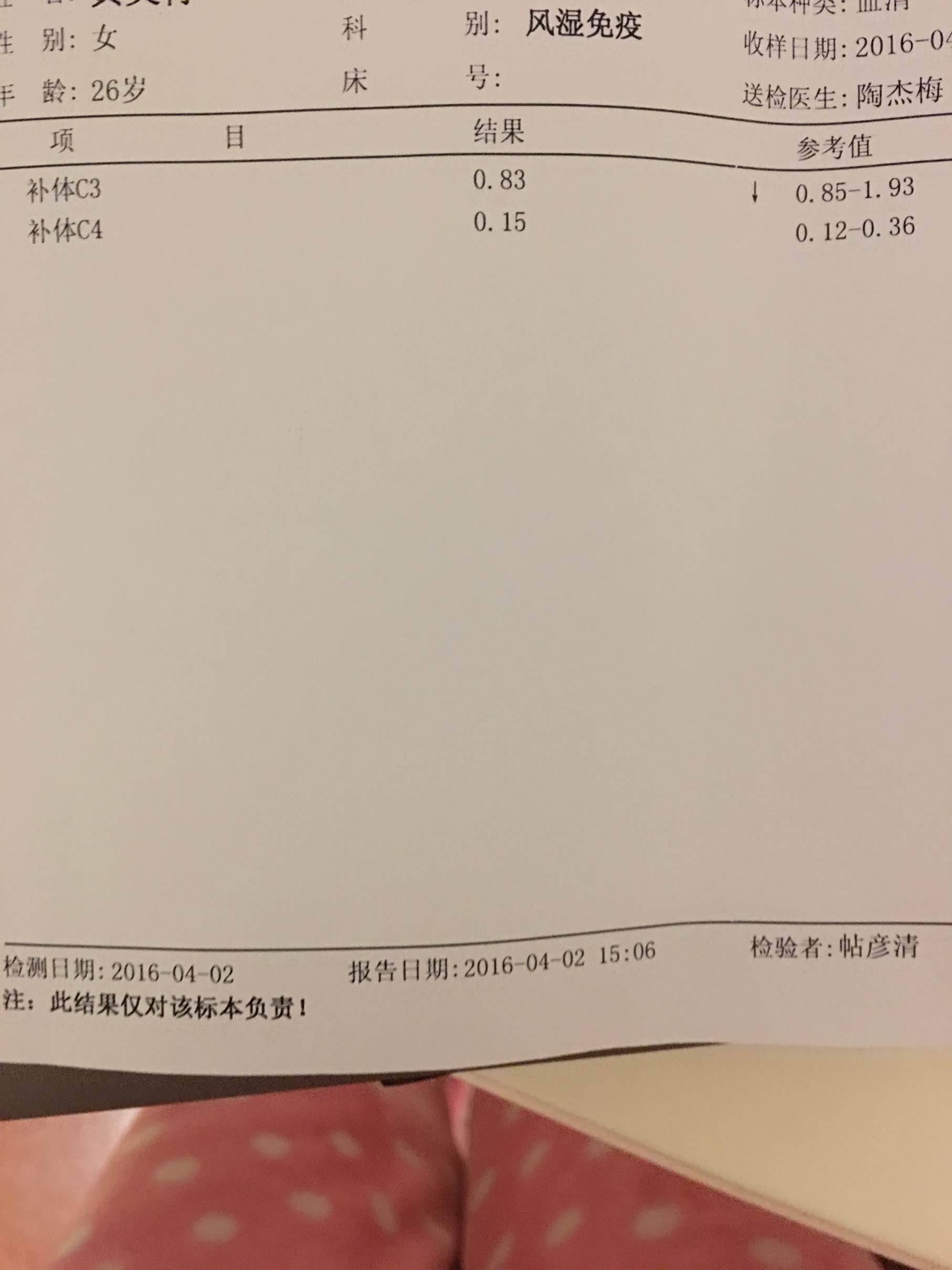 还不错啦,补体低那么一点点的