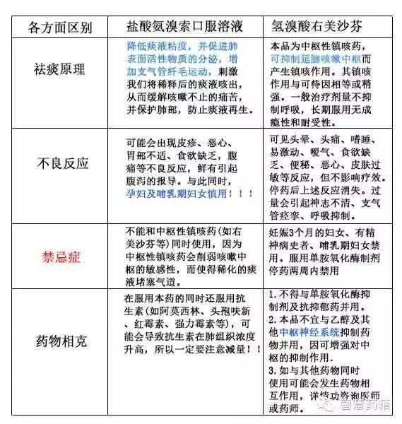 看了以上智慧药箱苦心整理的两药的对比后,您想必已经知道知道他俩的根本区别了,对!就是氢溴酸右美沙芬主要用于剧烈的干咳而盐酸氨溴索口服溶液则主要负责痰液的稀释与排出,所以请大家谨慎选择最适合您的药吧~~不过千万别忘记,这两个药千万不能一起吃,严重时会导致窒息的!!