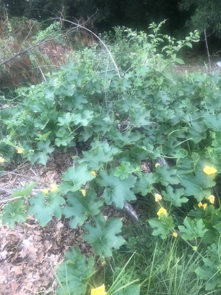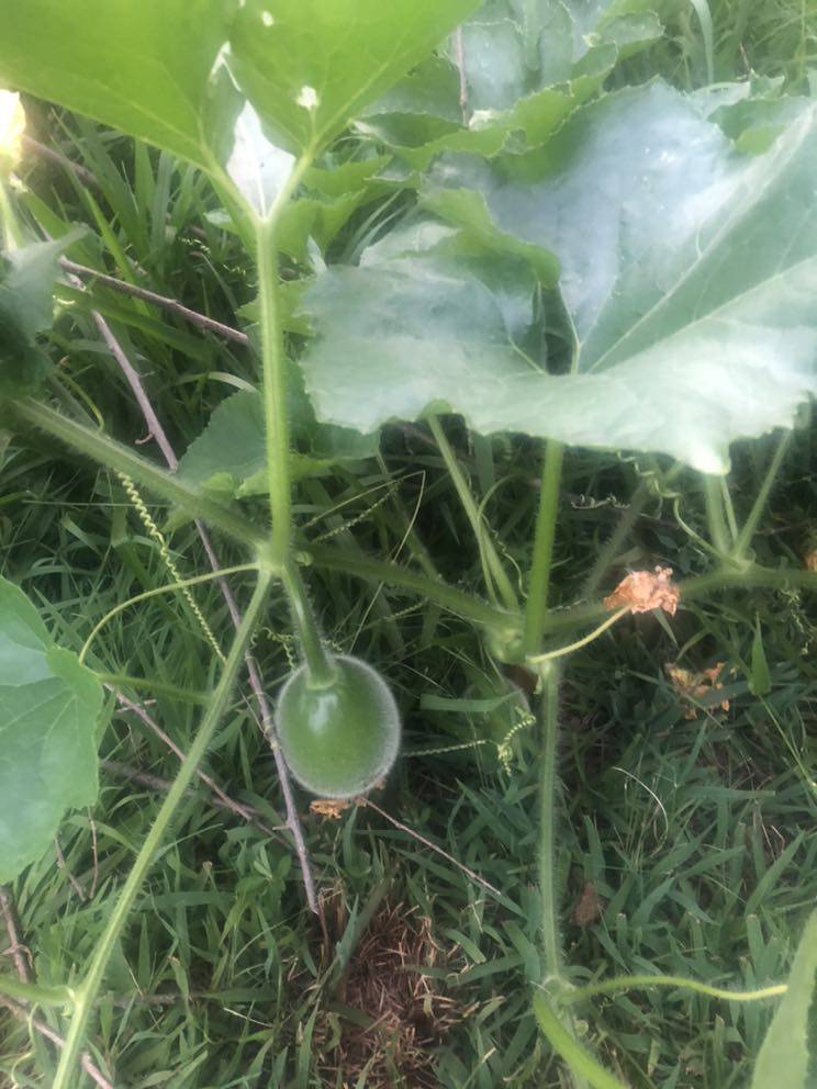 花钱请人弄个坑树的。今年种的瓜,不知道是什么瓜,把厨房的垃圾埋在了树叶堆上,自己长一堆