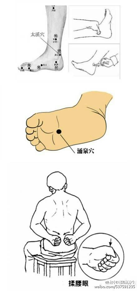 肾虚常表现为头痛、脑袋发空、耳鸣、耳聋、牙齿松动或脱发。有的女性还会在行经时牙痛。太溪穴是肾经原穴,是肾经元气经过和留止的部位,所以古人称太溪为“回阳九穴之一”。按揉太溪穴可以滋肾水,有补肾之功。还可配合按揉涌泉穴,摩擦两侧腰部等方法。