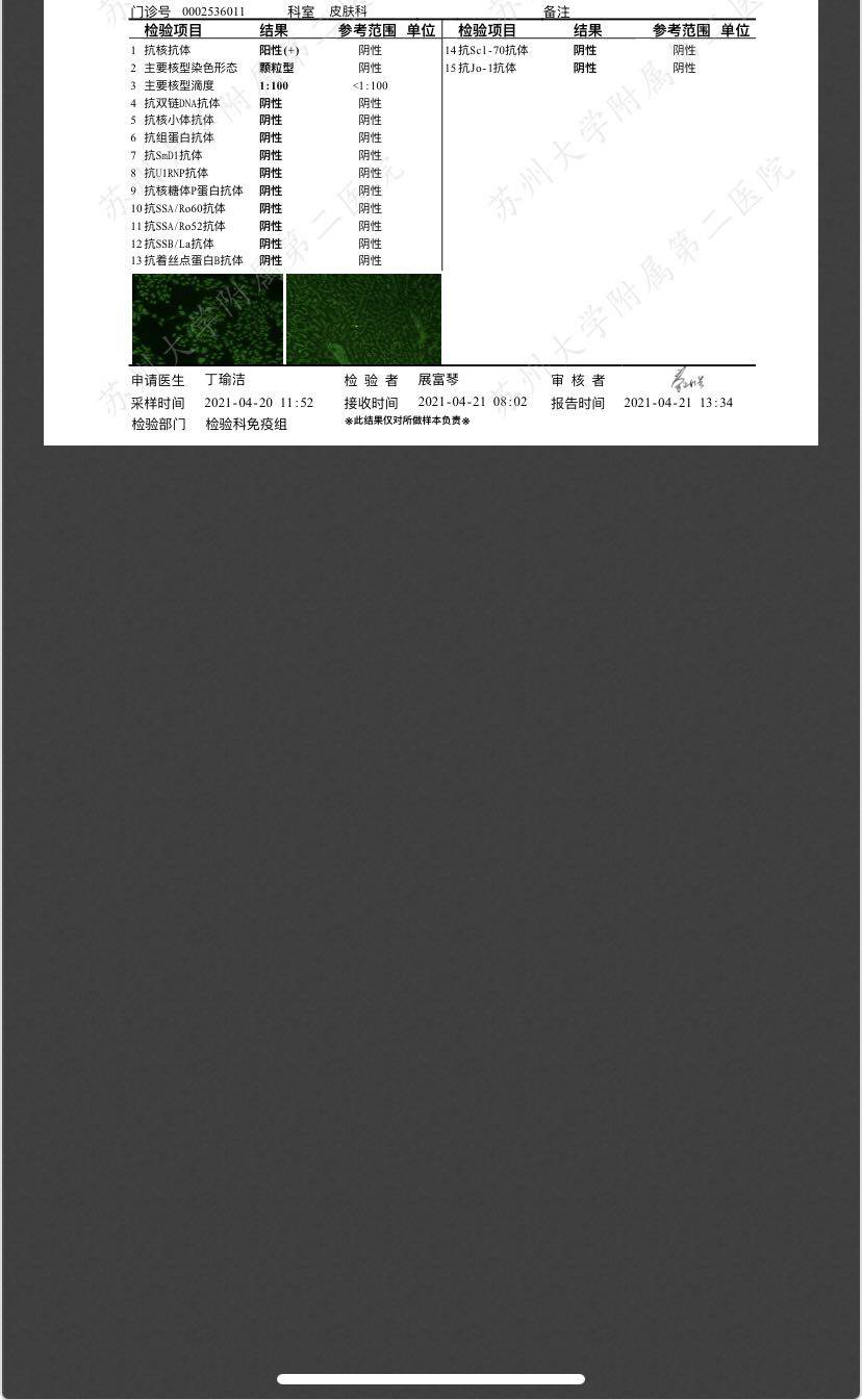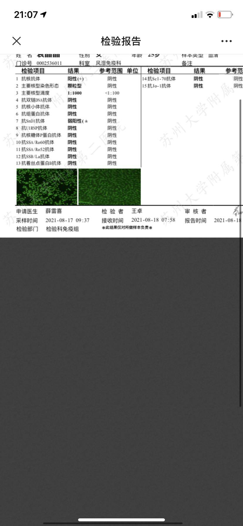 你自己有哪里不舒服吗?我就是未分化结缔组织,医生说掉头发,关节疼,口腔溃疡这些都可能有狼疮倾向。我是掉发多,医生说怕分化所以就直接让吃激素加纷乐这些