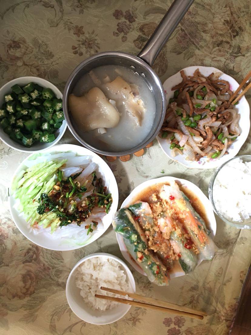 自从老公退休后,烧饭的活都交给他了,我现在难得做一次,今天忙了一上午做了几个菜,一个多月没给老弟送菜了,做了他爱吃的绿豆凉粉,越南米纸卷,酸黄瓜炒毛豆,煎牛排、咖喱虾仁土豆条,急着给他送走,忘了拍照了。