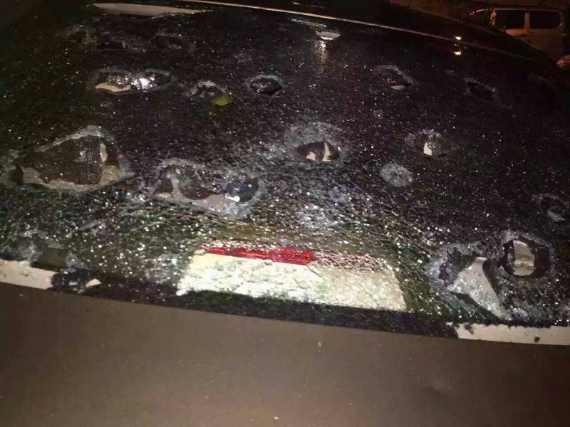 这个月下了几次冰雹了,这下好了,整条街的车都被砸的稀巴烂,我们的也烂的好惨,还在下着暴雨没办法,只有明天白天再看了。