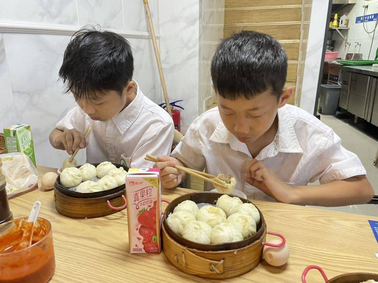 早上一起来,打仗一样,只煮了蛋。根本来不及,孩子也不愿吃家里的,要出去吃小笼包。