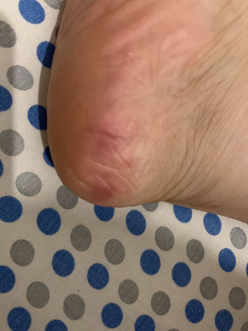 下午走路有点脚底疼,还有点麻,就是接触地面会有点麻次次的!晚上脱袜子洗脚的时候,一看不得了,脚后跟这么几个红斑还有点干裂!这就是手足综合症吗?感紧多抹点润肤霜!