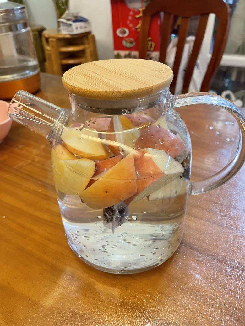 然后陪我去买了菜,烧了一桌子菜。我还特别煮了水果茶,因为苹果太多,今天的水果茶就只放了苹果。获得董叔叔大赞,喝酒之余,一直就喝水果茶。。